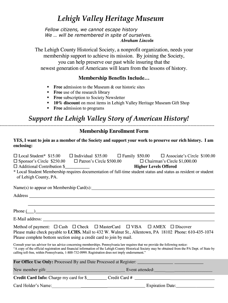Get the free A printer-friendly membership form (pdf). - Lehigh Valley Heritage ... - lehighvalle...