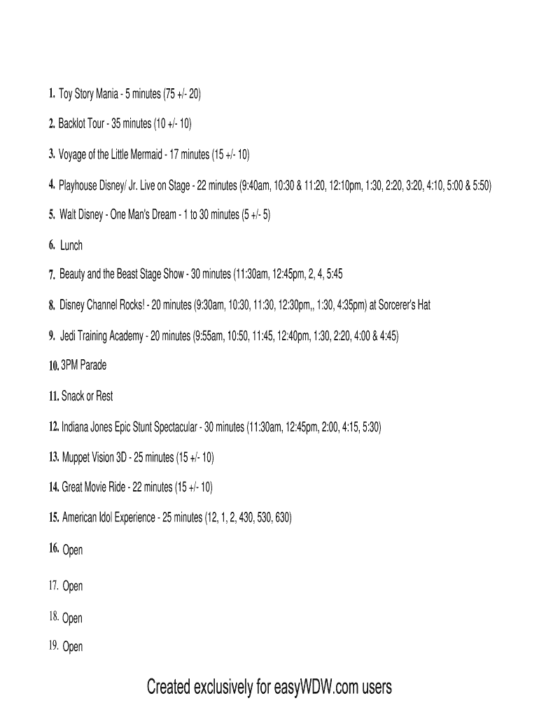 Get the free Hollywood Studios - One Day - Touring Plan With ... - easyWDW