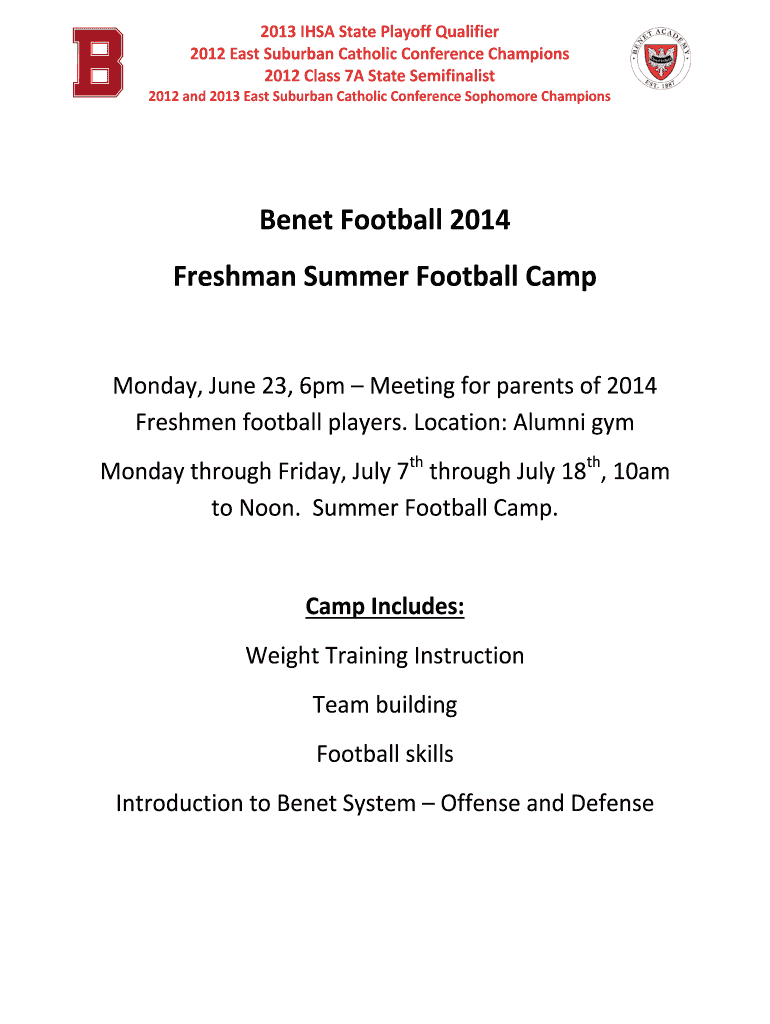 Get the free Benet Football 2014 Freshman Summer Football Camp