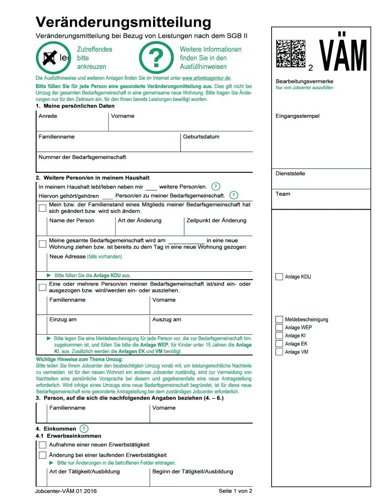 Jeder Leistungsempfänger von ALG II ist verpflichtet, eine Veränderungsmitteilung einzureichen, wenn sich persönliche Umstände ändern.
