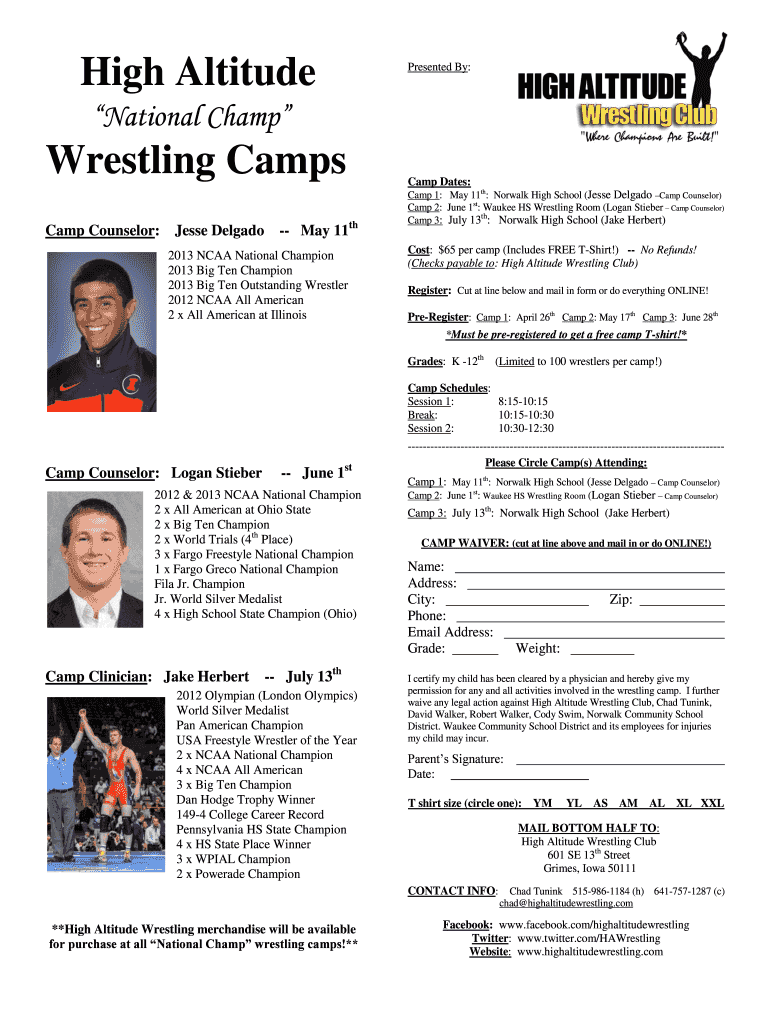 High Altitude Presented By: National Champ Wrestling Camps Camp Counselor: Jesse Delgado May 11th 2013 NCAA National Champion 2013 Big Ten Champion 2013 Big Ten Outstanding Wrestler 2012 NCAA All
