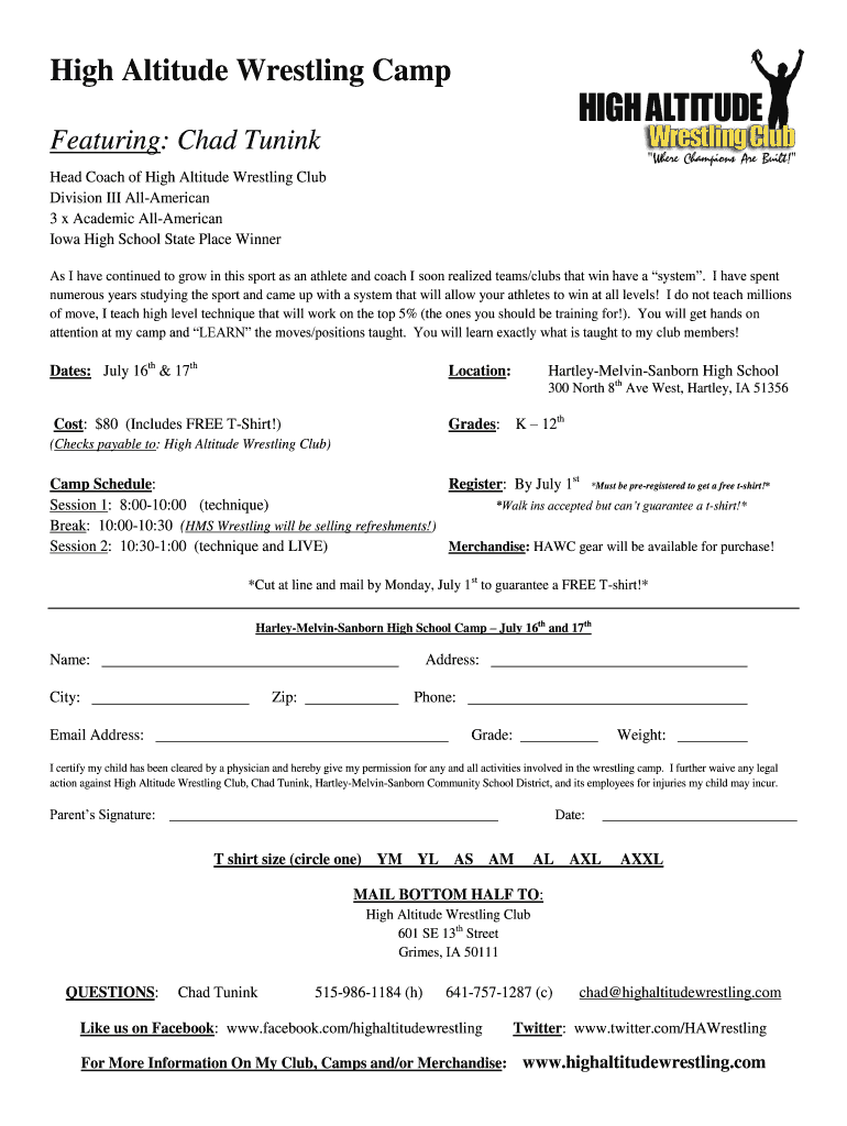 Head Coach of High Altitude Wrestling Club. Division ... Iowa High School State Place Winner ... Harley-Melvin-Sanborn High School Camp July 16th and 17th.
