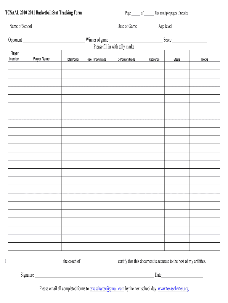 Get the free Basketball Stat Tracking Form - texascharterorg