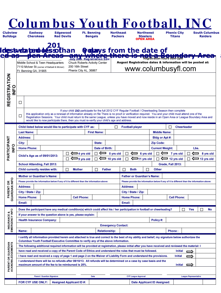 Get the free 201 Season Participant Application - Columbus Youth Football, Inc.