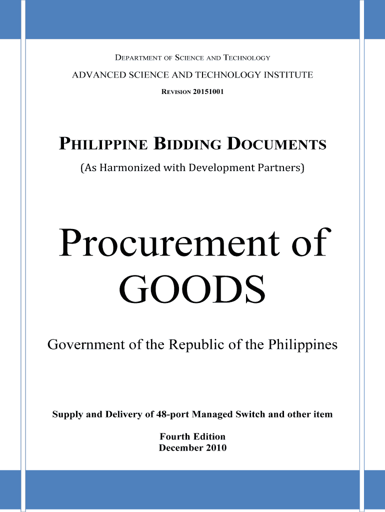 DEPARTMENT OF SCIENCE AND TECHNOLOGY ADVANCED SCIENCE AND TECHNOLOGY INSTITUTE REVISION 20151001 PHILIPPINE BIDDING DOCUMENTS (As Harmonized with Development Partners) Procurement of GOODS Government