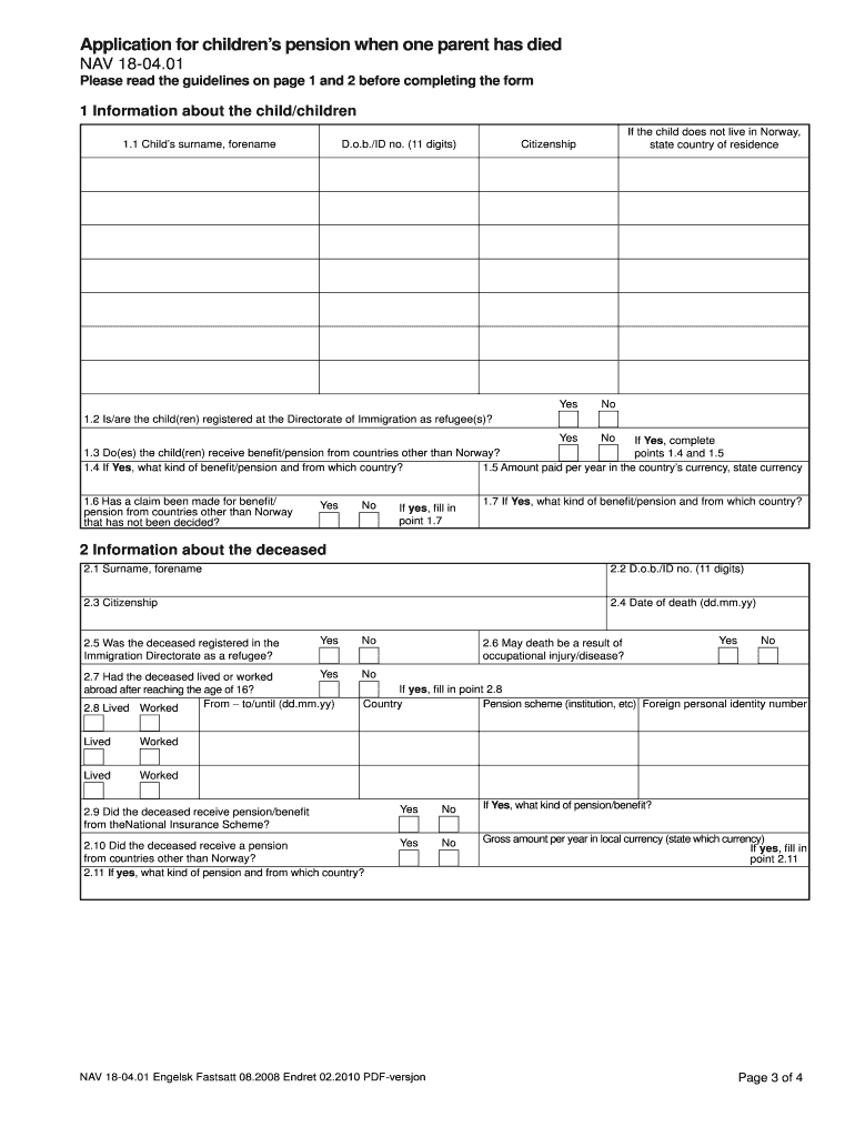 Get the free Application for childrens pension when one parent has died NAV 18-0401engelsk02-2010