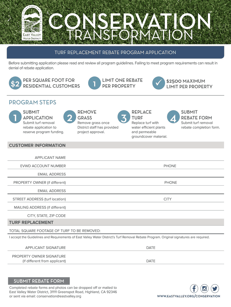 TURF REPLACEMENT REBATE PROGRAM APPLICATION Before submitting application please read and review all program guidelines. Failing to meet program requirements can result in denial of rebate application.