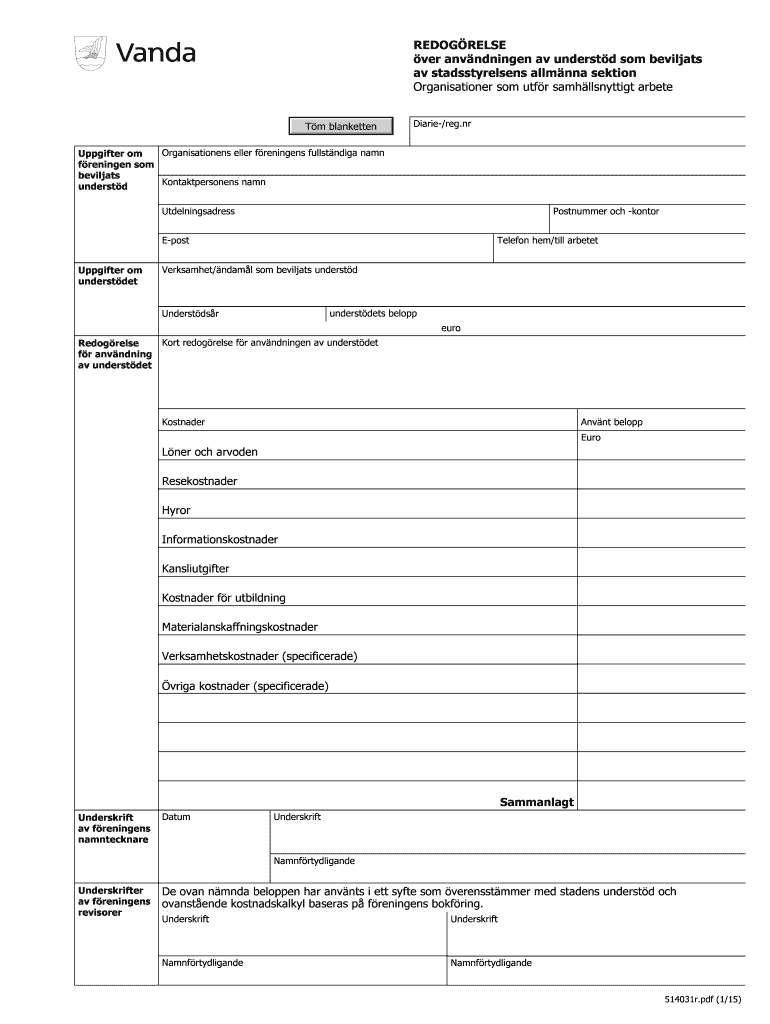 Get the free Av stadsstyrelsens allmnna sektion Organisationer som - vanda
