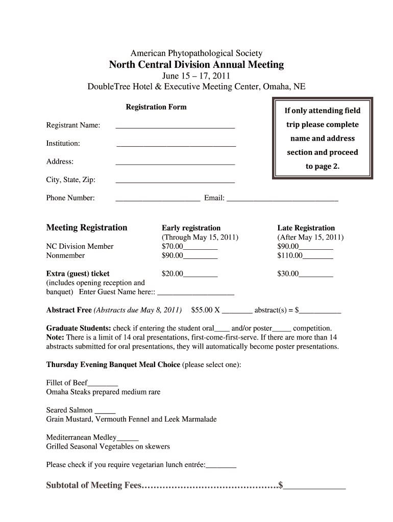 Get the free North Central Division Annual Meeting Registration Form - apsnet