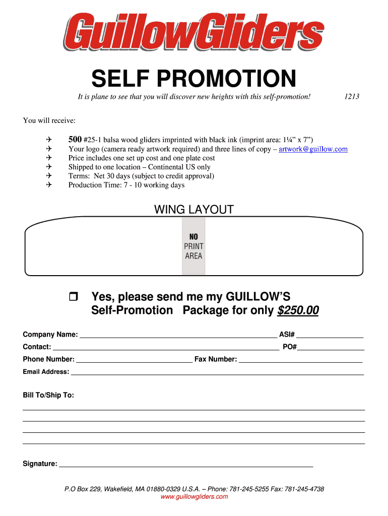 SELF PROMOTION It is plane to see that you will discover new heights with this self-promotion! 1213 You will receive: 500 ×251 balsa wood gliders imprinted with black ink (imprint area: 1 × 7) Your