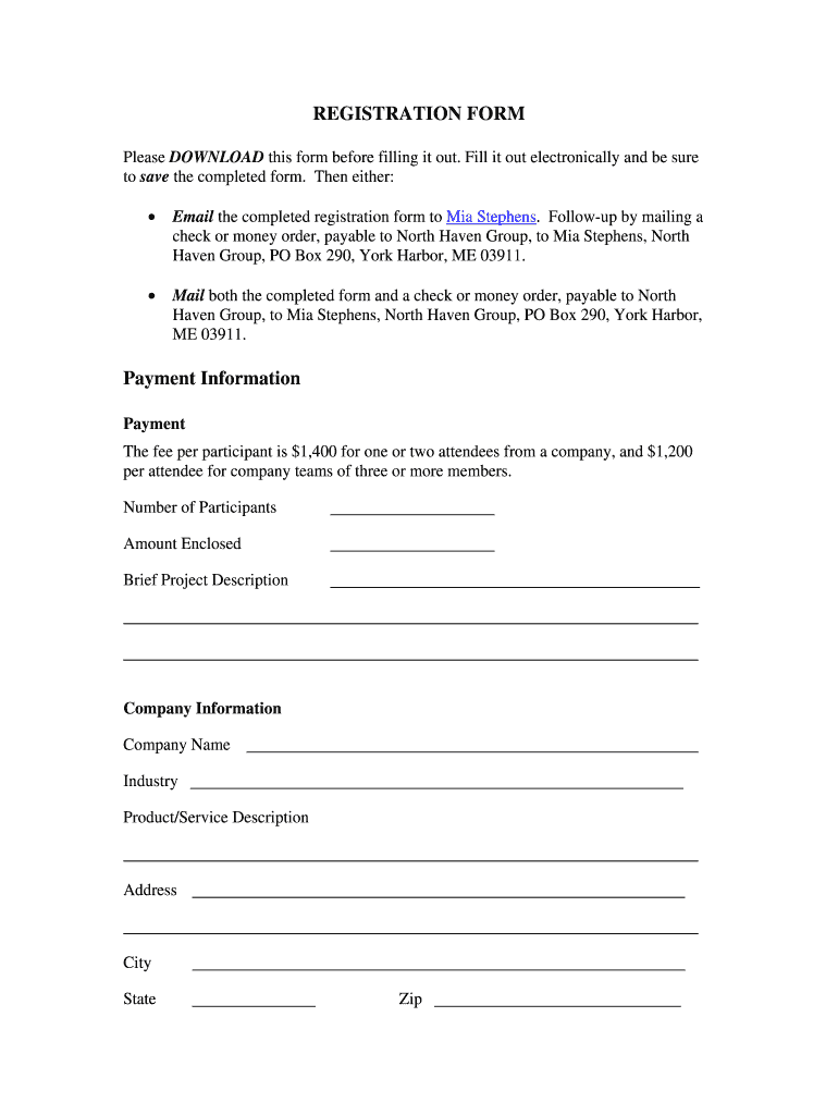 REGISTRATION FORM Please DOWNLOAD this form before filling it out. Fill it out electronically and be sure to save the completed form. Then either: Email the completed registration form to Mia Stephens.