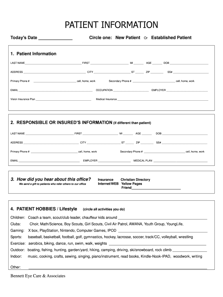 Patient Information - Bbennetteyebbcomb is not the form you're looking for?Search for another form here.