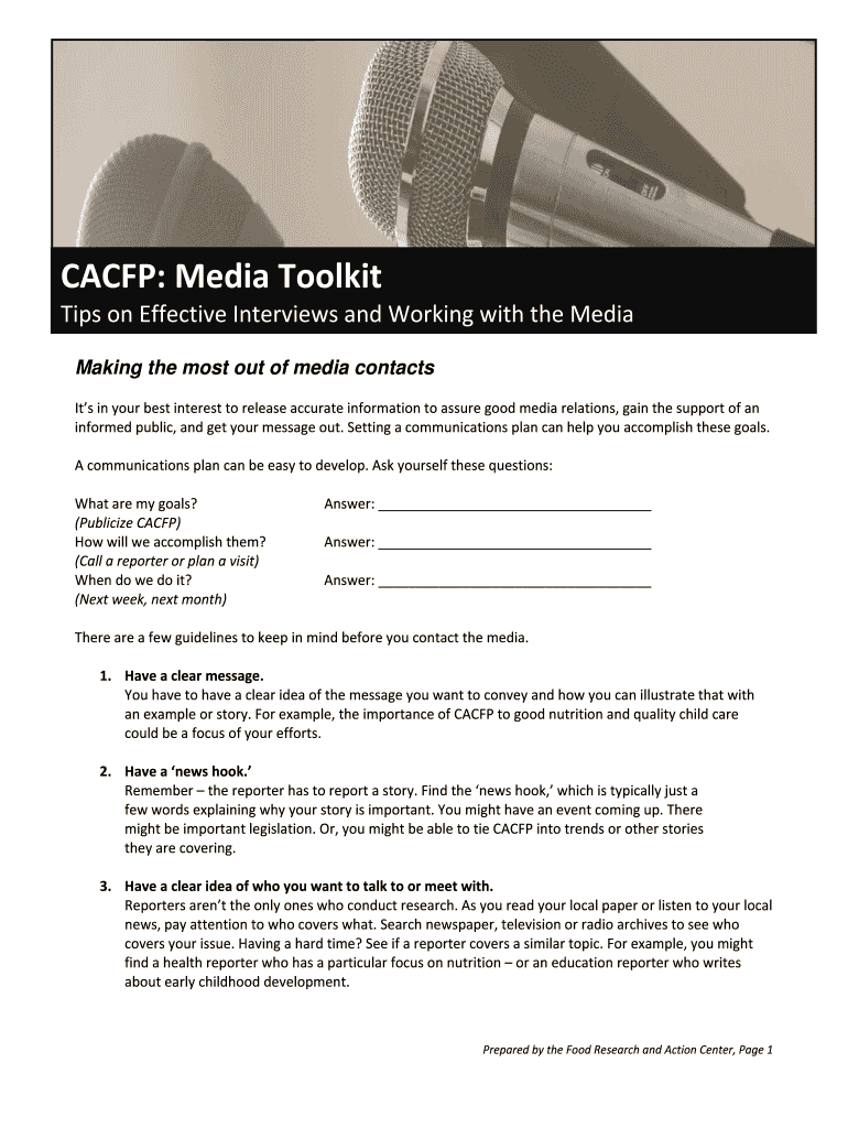 The CACFP Media Toolkit is a comprehensive resource designed to assist organizations and individuals involved with the Child and Adult Care Food Program (CACFP) in effectively communicating with the media. Understanding the importance of strong media relations is crucial for success in advocacy and outreach efforts. The toolkit contains various valuable components, including tips for interviews and guidelines for engaging with media effectively, ensuring a coherent messaging strategy throughout.