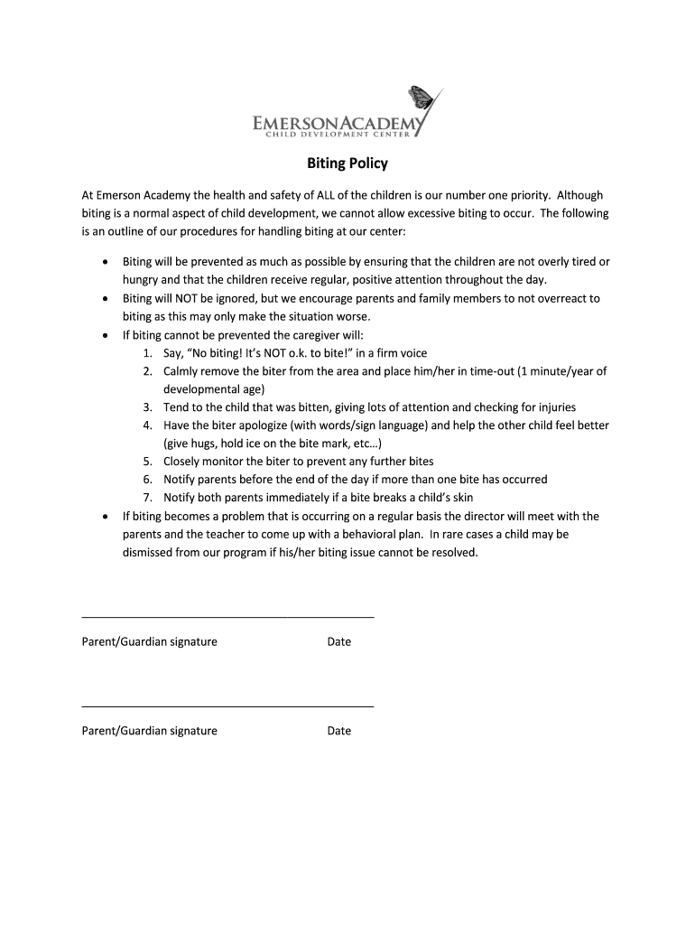 Get the free Biting Policy - bEmersonb bAcademyb