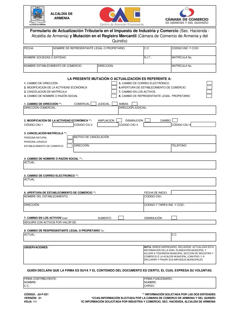 Obtener el gratis Formulario de Actualizacin Tributaria en el Impuesto de - camaraarmenia org