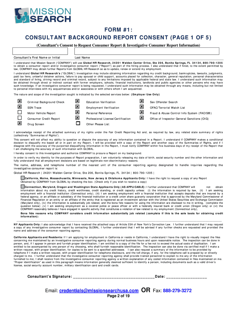 Complete all background report consent checkboxes as required.