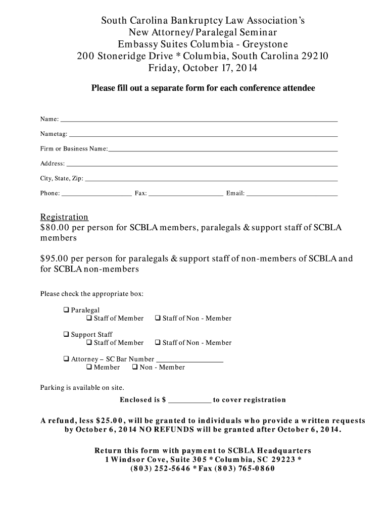 Get the free New Attorney/Paralegal Seminar Embassy Suites Friday, October 17 ... - scbla