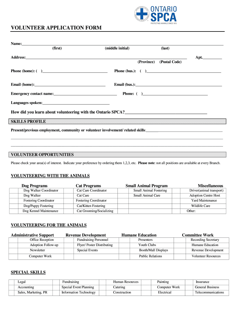 Get the free VOLUNTEER APPLICATION REVISED - bsdgbbontariospcabbcab - sdg ontariospca
