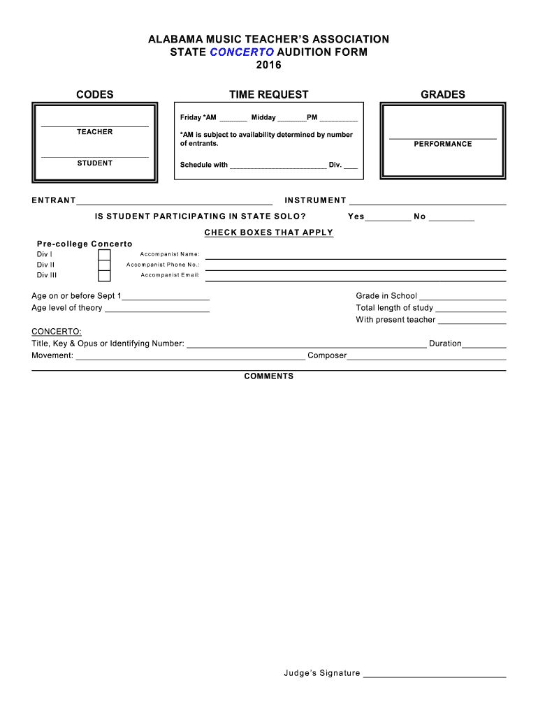 Get the free 2016 State Concerto Auditions Form - Alabama Music Teachers ... - almta