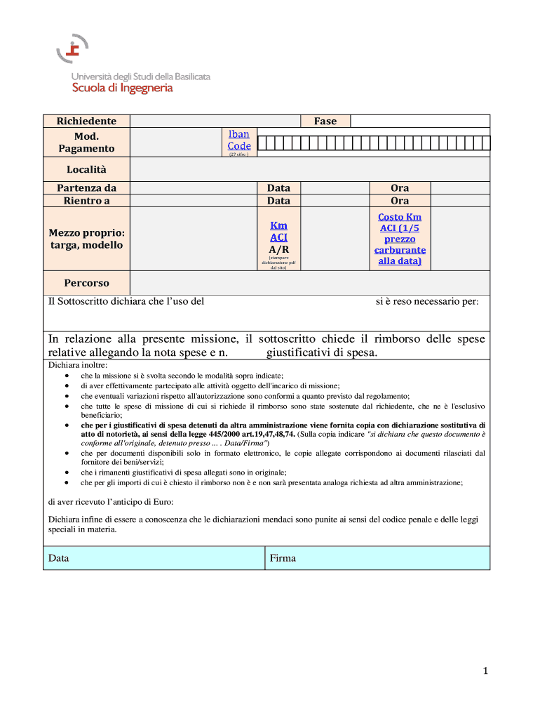 Ottieni il gratuito In relazione alla presente missione il sottoscritto chiede il rimborso - port...