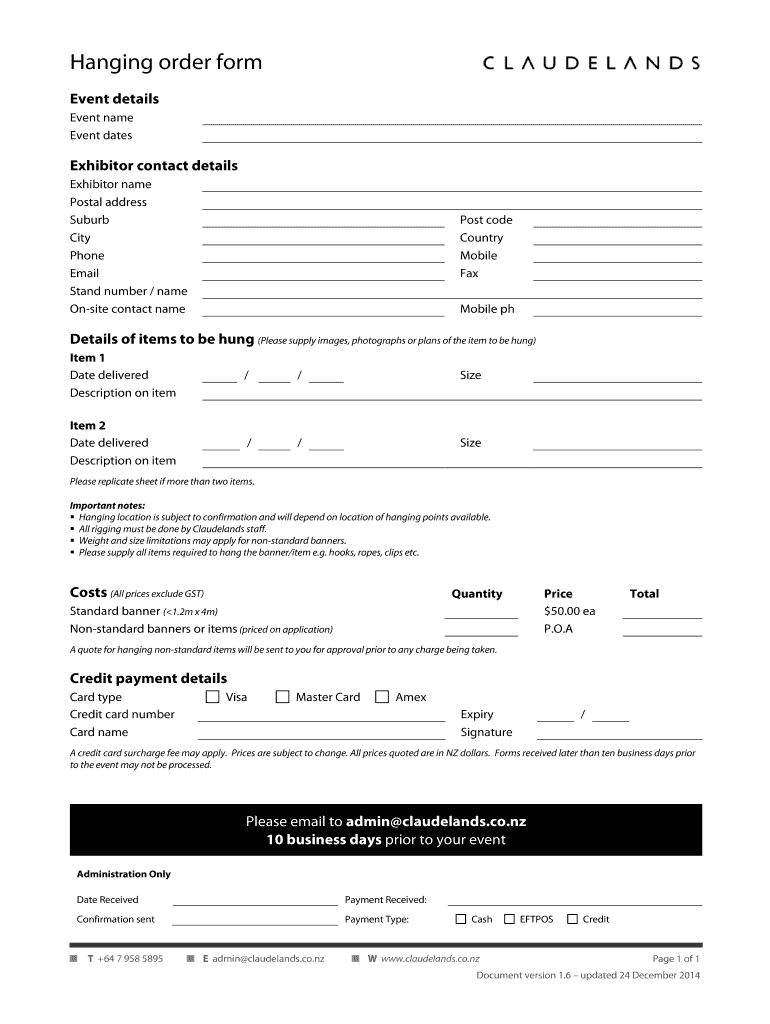 Get the free Hanging order form - waikatohomeshowconz - waikatohomeshow co