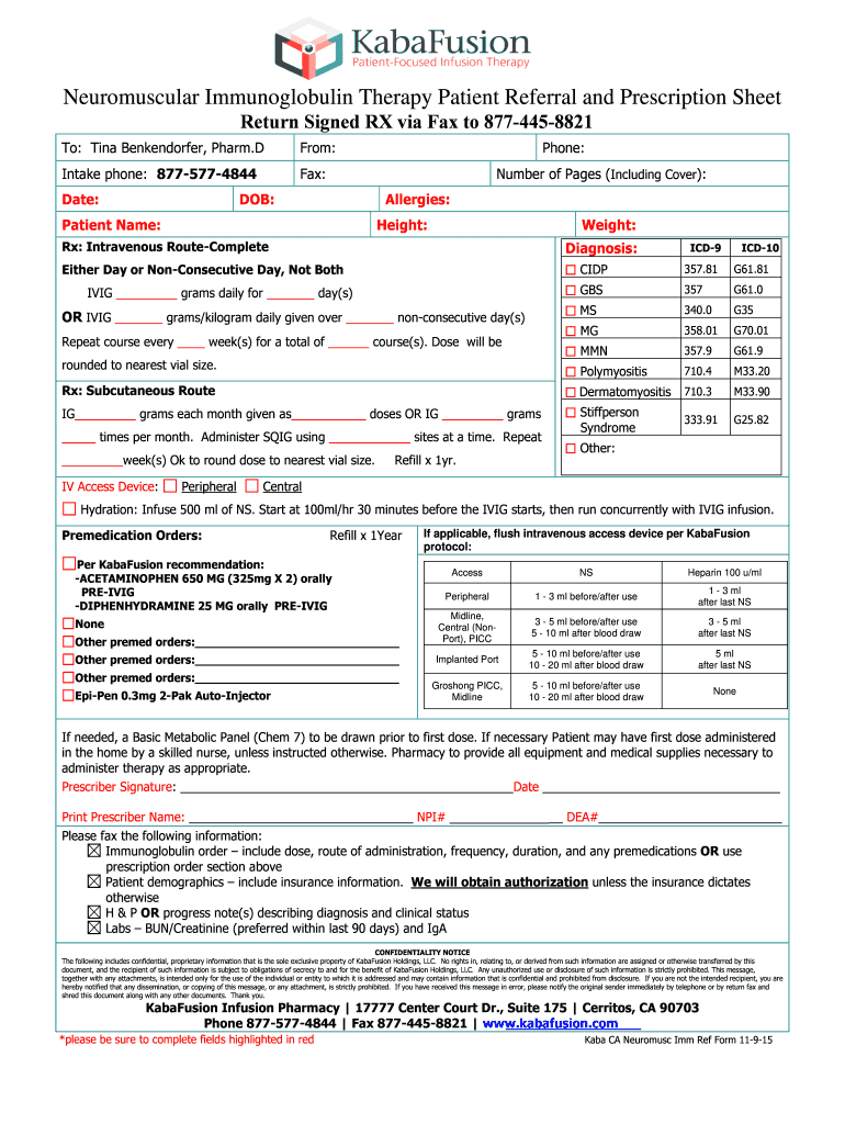 Get the free Neuromuscular Immunoglobulin Therapy Patient Referral and Prescription Sheet Return ...