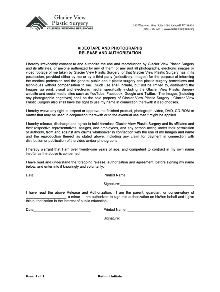 Get the free Videotape and photographs release and authorization - Glacier View ...