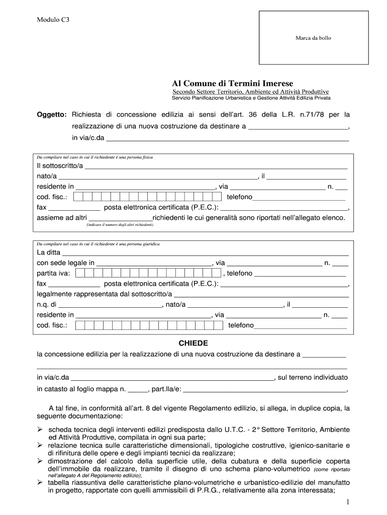 Ottieni il gratuito Richiesta di concessione edilizia per nuova costruzione - comuneterminiimeres...