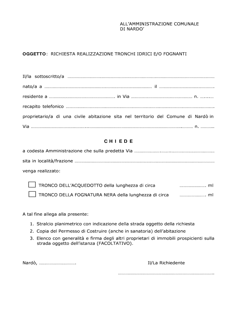 Ottieni il gratuito 04RICHIESTA REALIZZAZIONI TRONCHI IDRICI E FOGNANTI - llpp nardo puglia