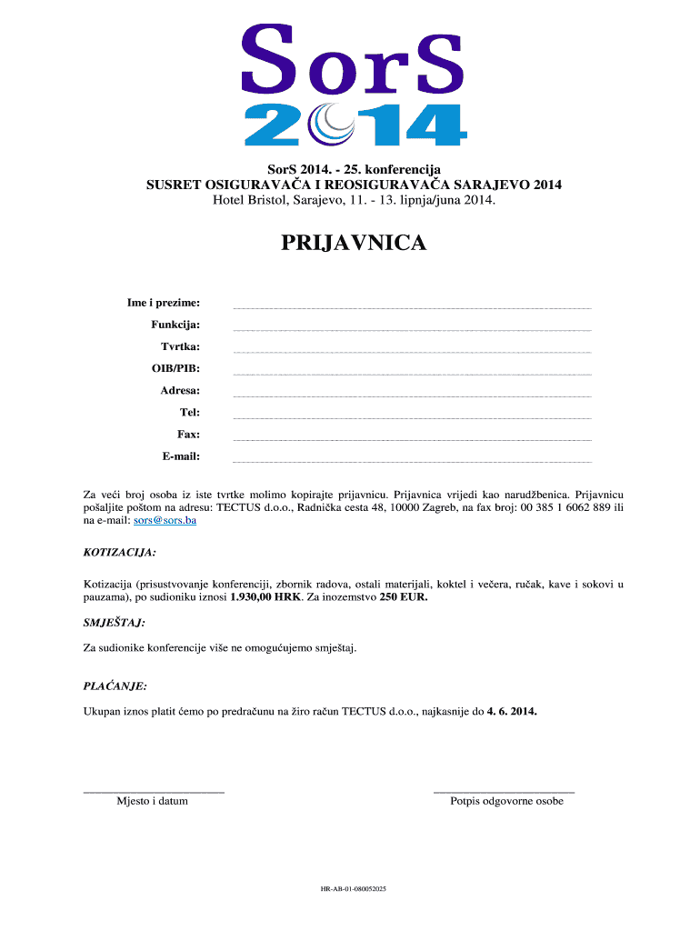 Prijavnica nova sors 2014doc can be filled out online or submitted in paper form with all the required information.