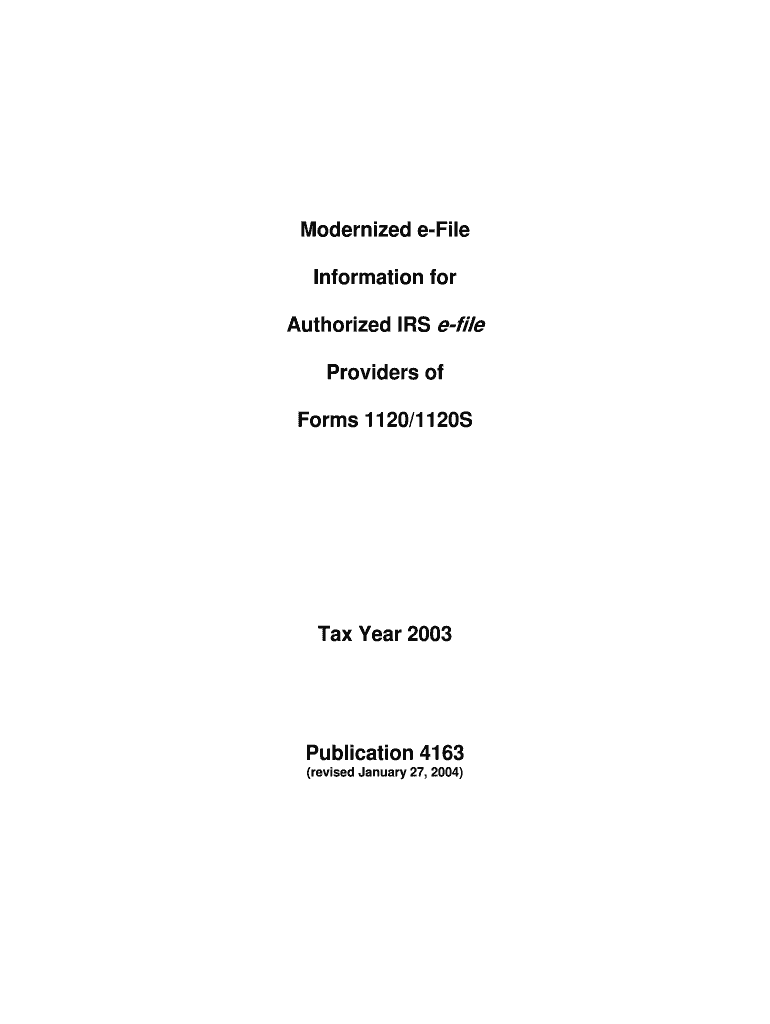 Get the free Publication 4163 Rev January 2004 Modernized e-File Information for Authorized IRS e...