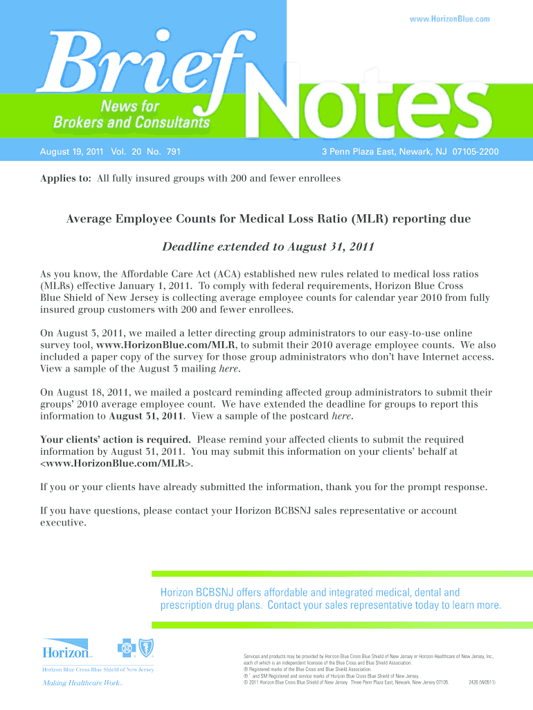 Get the free Horizon BCBSNJ Brief Notes V. 20, No. 791 - Average Employee ...