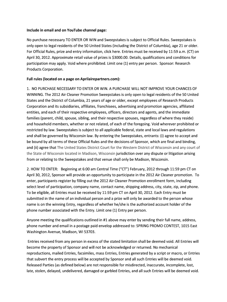 No purchase necessary TO ENTER OR WIN and Sweepstakes is subject to Official Rules. Sweepstakes are