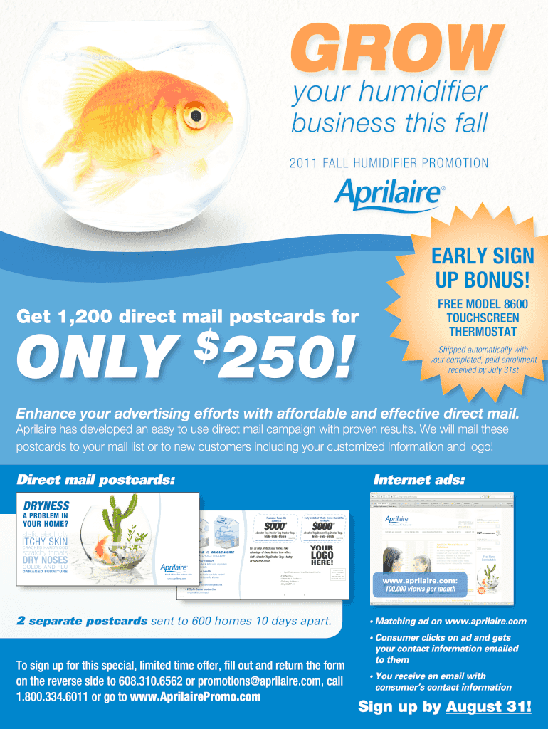 EARLY SIGN UP BONUS! Get 1,200 direct mail postcards for $250! ONLY FREE MODEL 8600 TOUCHSCREEN THERMOSTAT Shipped automatically with your completed, paid enrollment received by July 31st Enhance