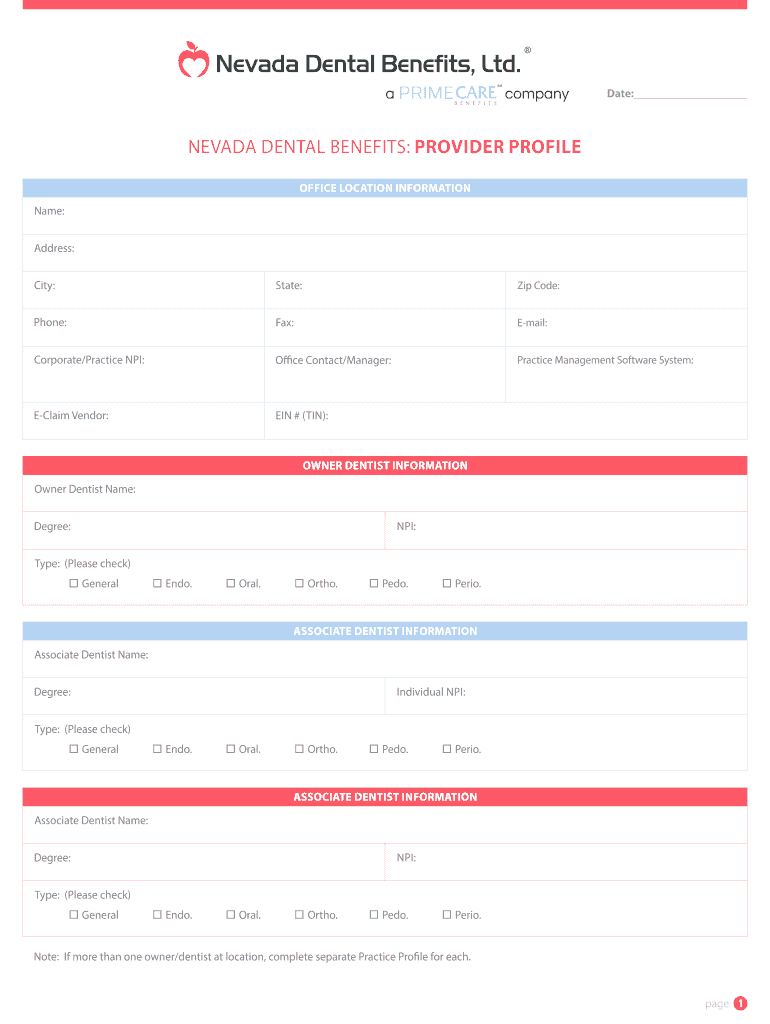 Get the free NEVADA DENTAL BENEFITS PROVIDER PROFILE