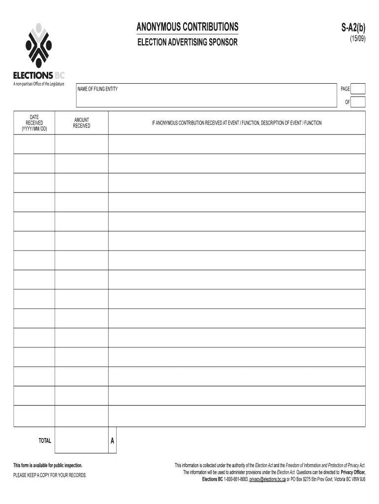 Get the free S-A2(b) ANONYMOUS CONTRIBUTIONS - Elections BC - electionbc