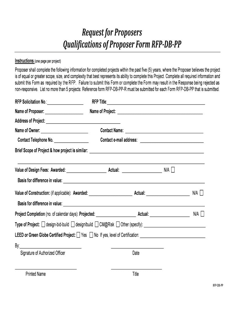 Get the free Request for Proposers Qualifications of Proposer bFormb RFP-bDBb-PP
