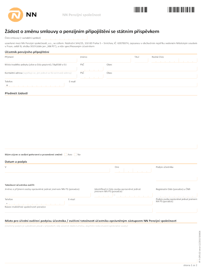 Get the free Nu smlouvy o penzijnm pipojit n se sttnm p sp - penze nn