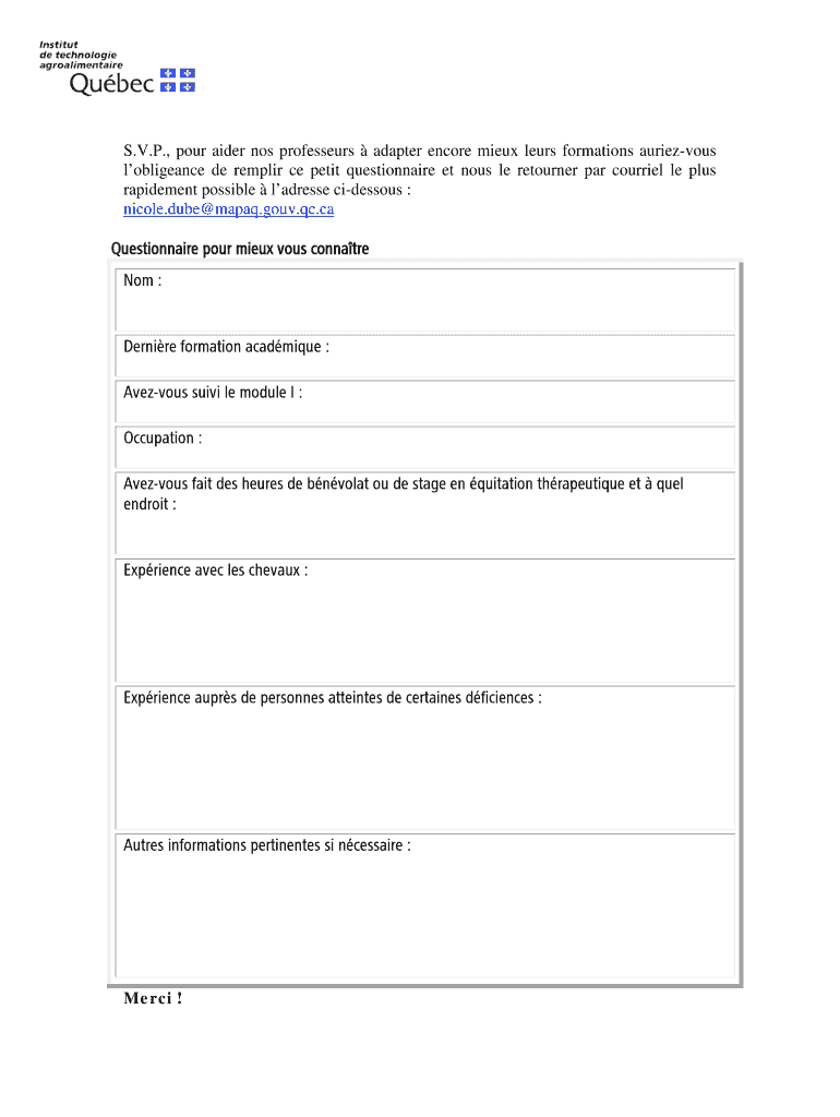 S.V.P., pour aider nos professors adapter encore moon lemurs formations grievous lobligeance de repair CE petite questionnaire ET nous LE returner par ...