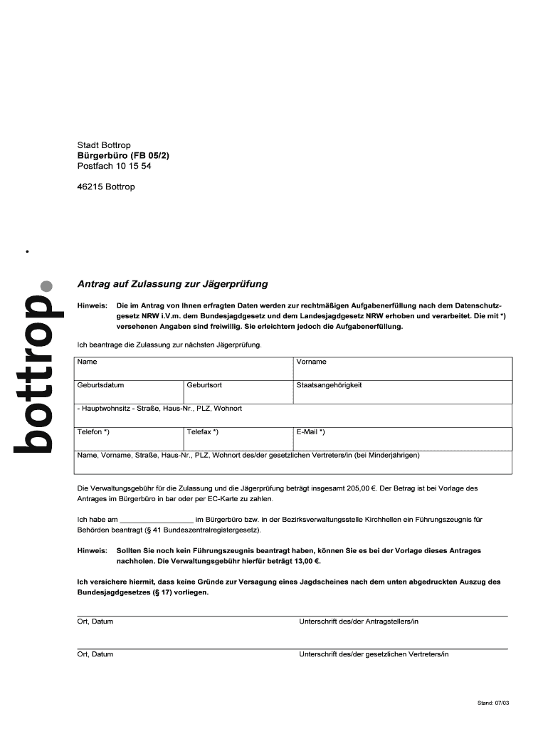 Her Ant rag is persnlich I'm Örebro Oder in her Bezirksverwaltungsstelle Kirchhellen vorzulegen. Start Bottrop Örebro (FB 05/2) Postal 10 15 54 46215 Bottrop Ant rag AUF Classing our Jgerprfung