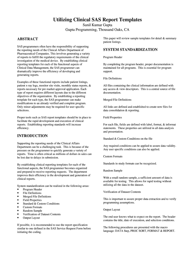 Get the free Utilizing Clinical SAS Report Templates