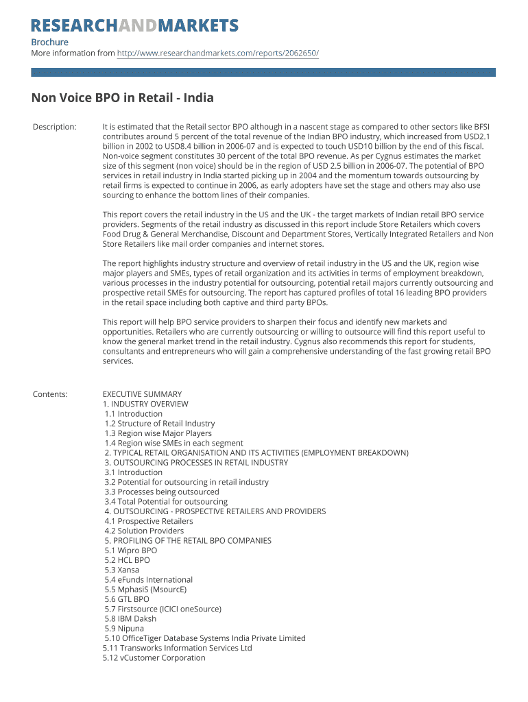 Get the free Non Voice BPO in Retail - India - Research and Markets