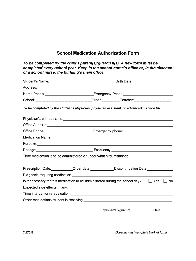 School Medication Authorization Form To be completed by the children parent(s)/guardian(s). A new form must be completed every school year. Keep in the school nurses office or, in the absence of a