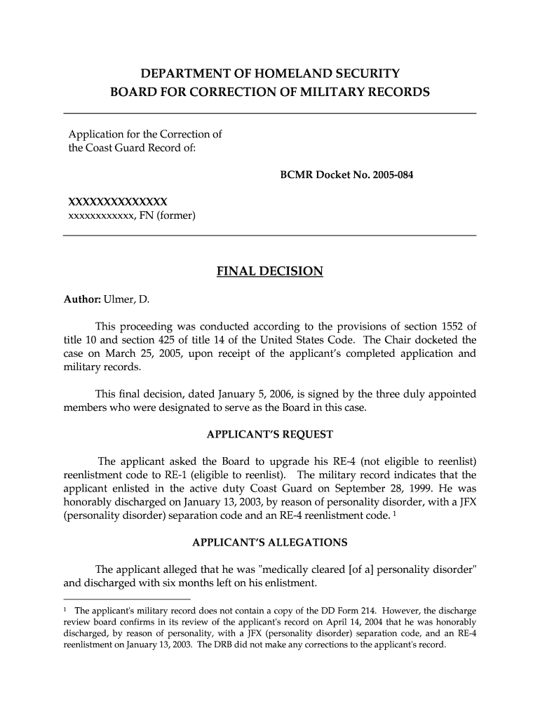 Get the free Department of homeland security board bfor correction of militaryb bb - boards law af