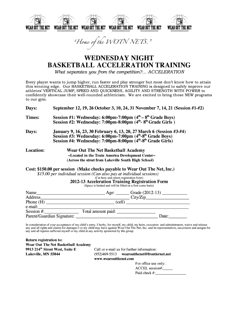 Edit your wednesday night basketball acceleration form online