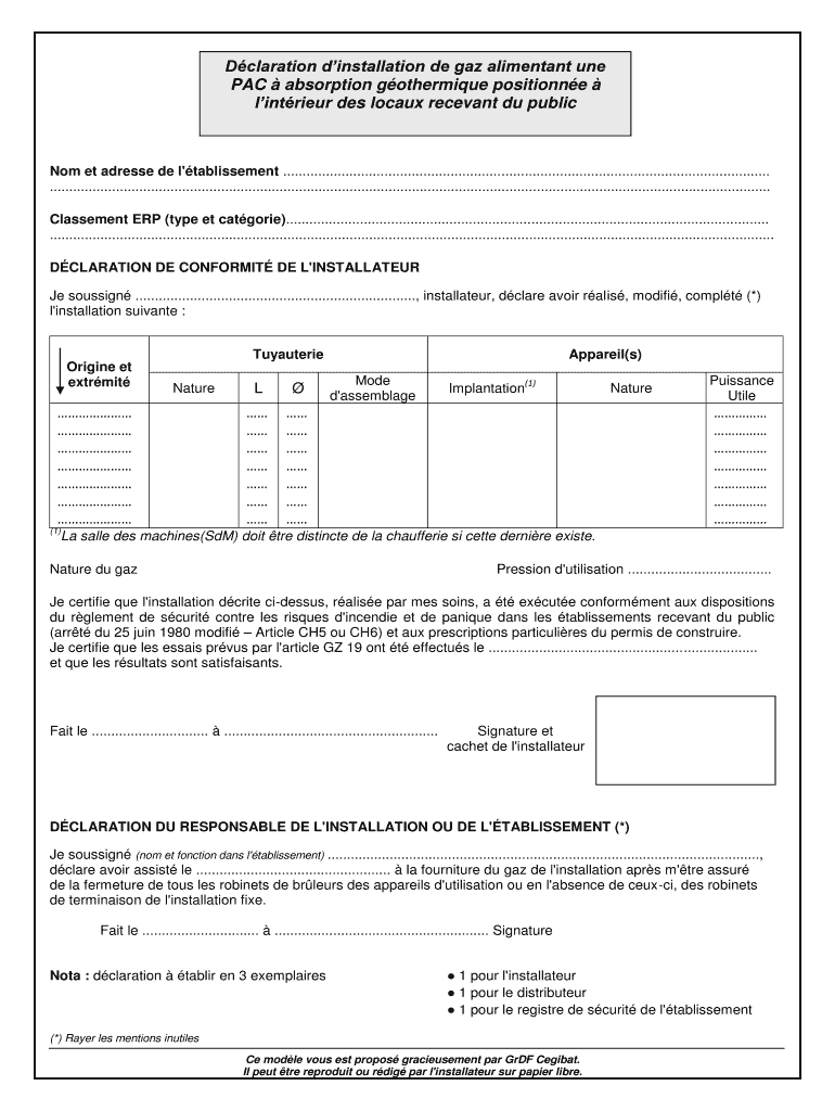 Obtenir le gratuit Dclaration dinstallation de gaz alimentant une PAC absorption gothermique posi...