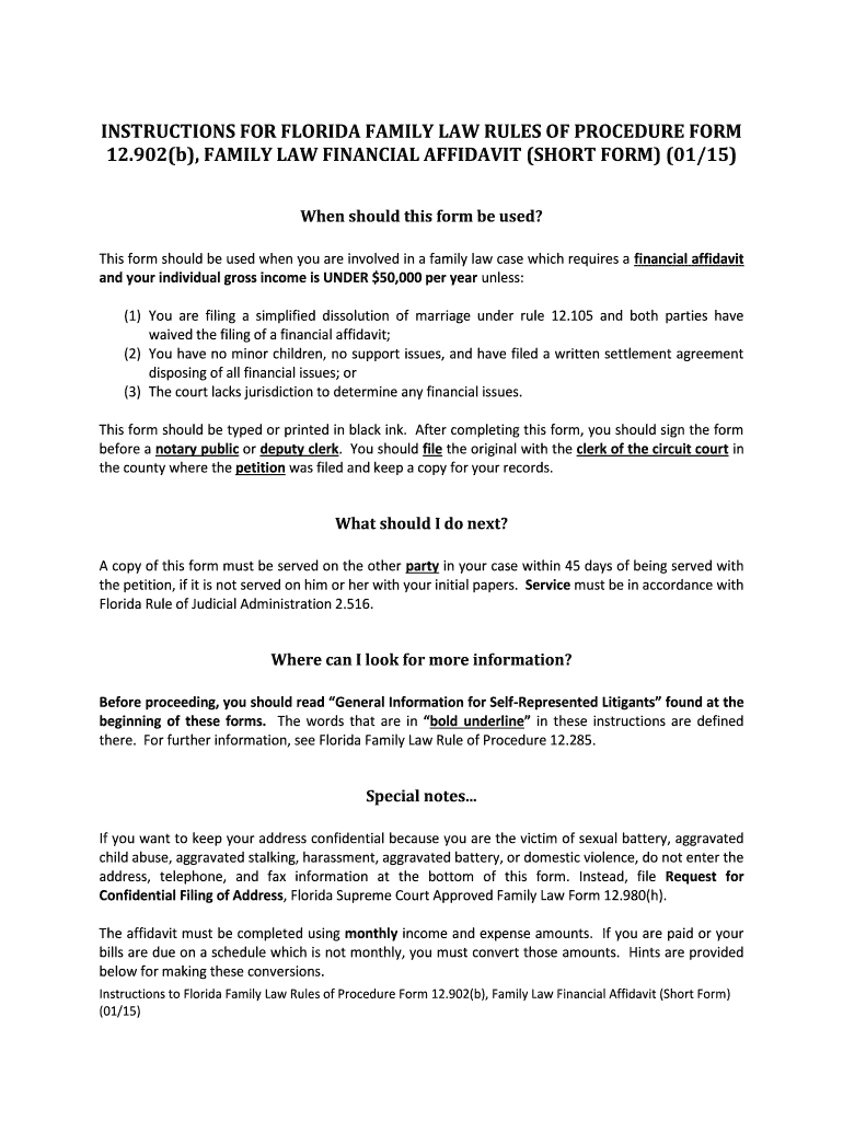 12.902(b), FAMILY LAW FINANCIAL AFFIDAVIT (SHORT FORM) (01/15)