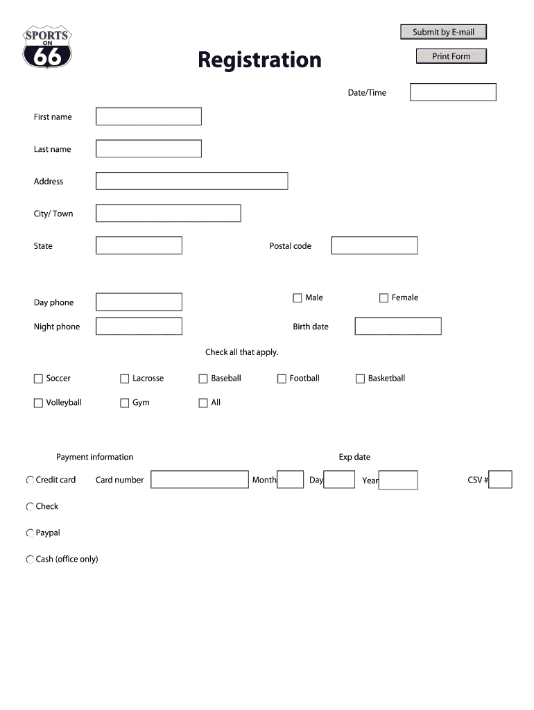 Get the free Registration - Sports on 66