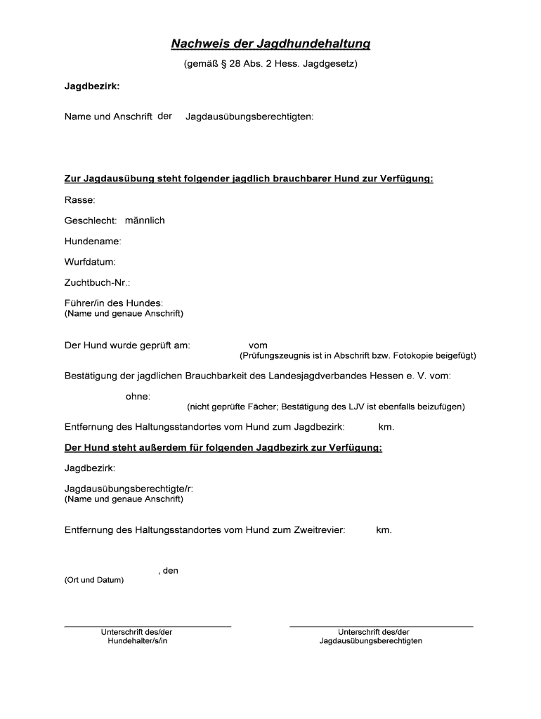 Wie fülle ich nachweis der jagdhundehaltung aus?