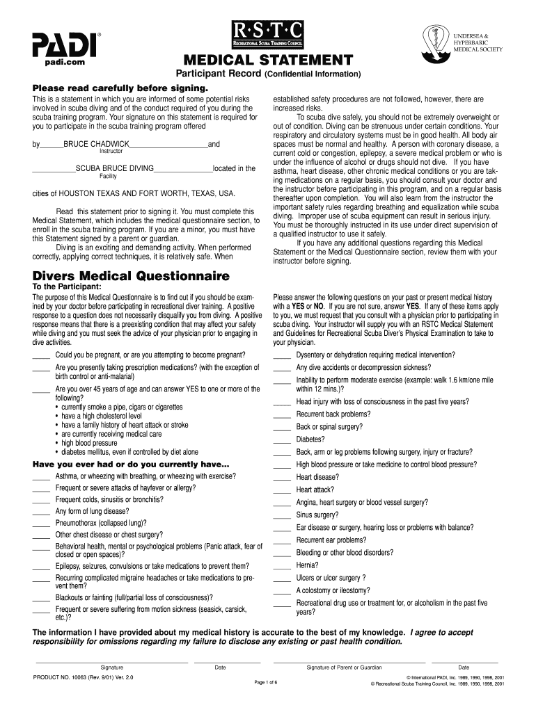 Take your time and avoid guessing: It is essential to take your time while completing the questionnaire and avoid guessing answers if you are uncertain. Guessing can lead to inaccurate information, which can have potential consequences during diving activities.